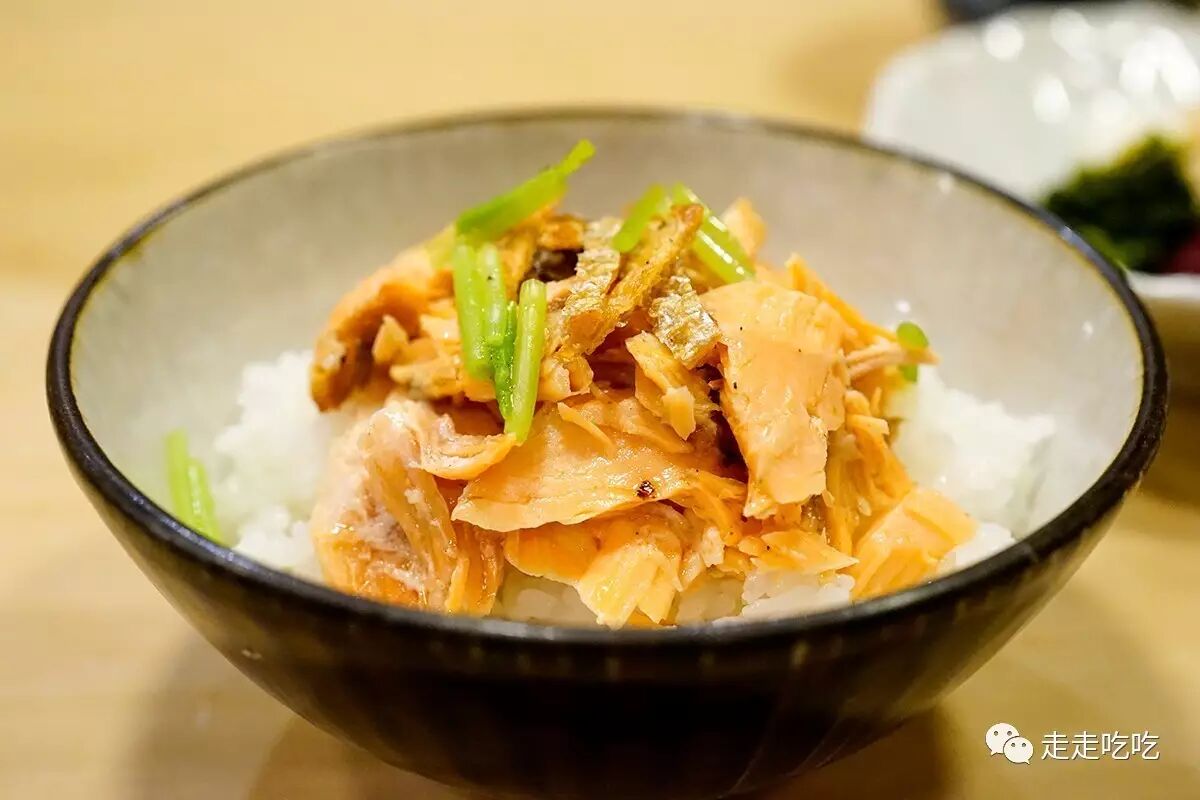 京味著名的烤鳟鱼饭名不虚传,鳟鱼烤得极香,皮酥肉嫩,配上细腻的白米饭,点缀些鸭儿芹,依然是简单的搭配,却有文字难以描述的好处。刚才我们吃着其他菜时,樱鳟已经在备长炭上慢慢烤制。吃藕粉球时,鳟鱼烤制完成,厨师开始剔肉摆盘,时机衔接得恰到好处。烤樱鳟很多地方都能吃到,作为时令食材,十分常见,但烤得像京味这般诱人,调味如此到位的实属少见。我对鲑科鱼兴趣寥寥,京味却化腐朽为神奇,不得不成为这碗口之臣。