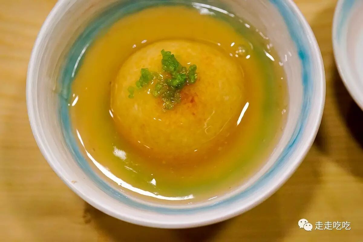 若说每一道菜都完美则夸张了,整个晚餐最不喜爱的一道便是藕粉球(蓮根饅頭),先炸后煮,薄葛勾芡(薄葛仕立て),是一道经典的菜式,不能说不好吃,只是与其他菜式相比太过平淡。京味的藕粉球是纯粹的藕粉球,夹开看,中心还有些粉状,并未烹煮至最好状态。虽然口感糯软,汤汁鲜甜,但单调至极。恰好当天中午刚去了京味学徒黑木纯出师所开的くろぎ,椀物便是藕球,但他的藕球暗藏机关,里面是海胆,配以海苔浓汤和青柳贝给人以极大的味觉冲击。相较我更喜欢黑木纯的呈现。不过作为御饭前的一道过度料理,也算是让人收一下心,准备进入主食阶段。
