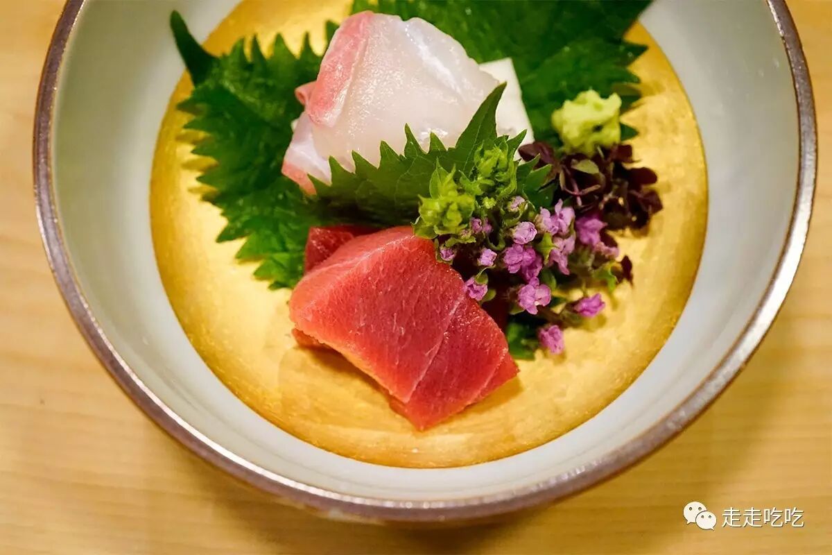 真鲷乃是日本料理中意义重大的一种鱼,开篇吃了鲷鱼粽,下一道菜又是鲷鱼白子。白子常以碳烤入馔,简单美味,但今日京味的做法却是油炸,但又不是天妇罗做法。油炸后的鲷鱼白子配上气味清新,带点辛味的防风叶子,这搭配简单至极,却又十分完整。白子高温油炸后洋溢着蛋白质的香气,入口后乳状的白子虽有些烫口,但如此美味怎能停下?防风叶则恰好起到解腻清口的作用。