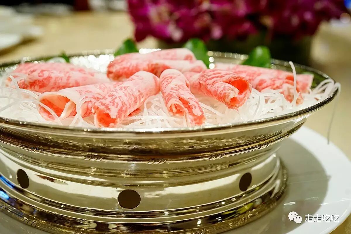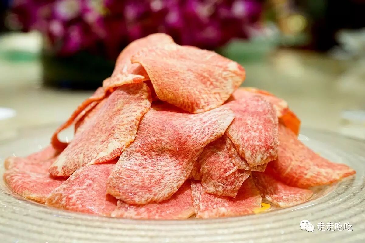 我们才吃到第三道,打边炉的朋友们已经吃上和牛肉了。菜单上非常暧昧地写着“海岛和牛”四个字,这海岛究竟是指哪里呢?众所周知,日本和牛暂不可进入我国,问服务员又给了个模棱两可的回应。澳洲和日本某种程度上都算是海岛,既然餐厅模模糊糊,我们也就糊糊涂涂地吃吧。除了牛肉片外还有牛舌,在北京算是品质极好的和牛肉了。