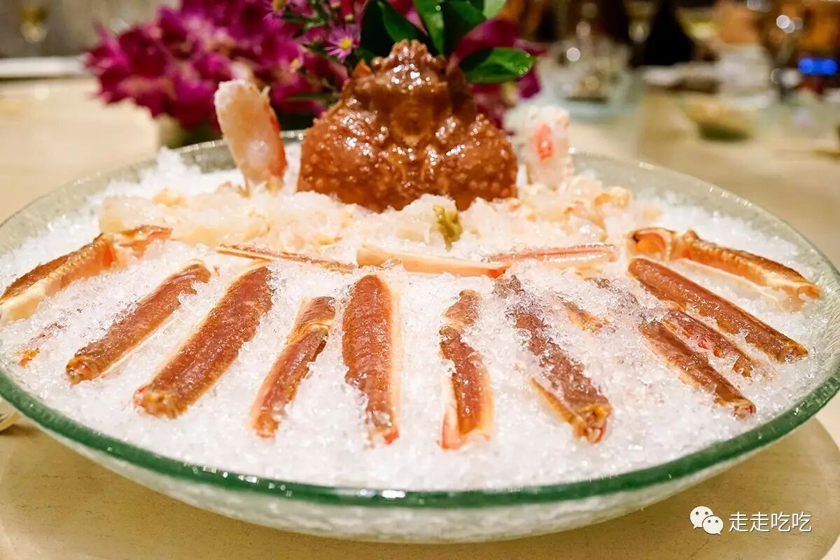 海鲜里所谓东瀛松叶蟹就比较玄乎了,这季节日本松叶蟹尚未开捕,大概率是朝鲜(已订购的朝鲜海鲜仍可发货)或者俄罗斯货,蟹体色泽较淡,蟹蛭稀少,不过新鲜度不错,肉质还算饱满。其余海鲜如獐子岛鲍鱼,天津牛角贝(栉江珧),南美海白虾等也算是各地精选,新鲜度保持得很好。从这个意义讲,原料素质可以给一朵小红花,但烹饪是看不出来的。