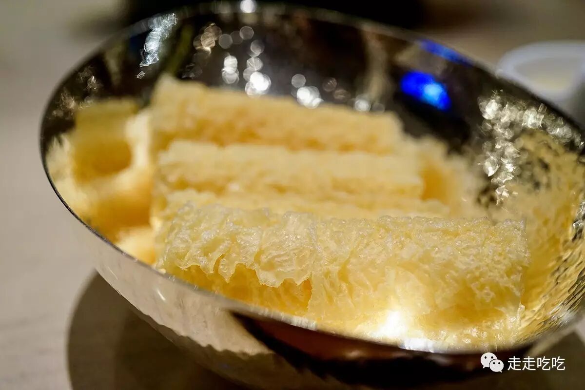 随后的斗门青蟹肉烩燕窝是不错的,蟹肉与燕窝炖煮到融为一体,十分鲜甜。不过卖松露的华总说,他那一份里面吃出不少蟹壳,大概厨师觉得他需要补钙,用心良苦。