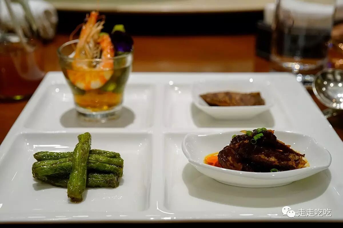 大家喝了点香槟后,打边炉的小炉子开始上桌,汤底大家多点了招牌的鱼汤底。厨房显然没有平衡好粤菜和打边炉的出菜速度,打边炉的前菜已经全部上桌,粤菜还毫无动静。于是我们几个点了粤菜的,只能偷偷吃些打边炉的前菜。我自然是点了粤菜套餐(第二套),毕竟这是La Liste中国第一的餐厅,不能涮次火锅就算吃过。