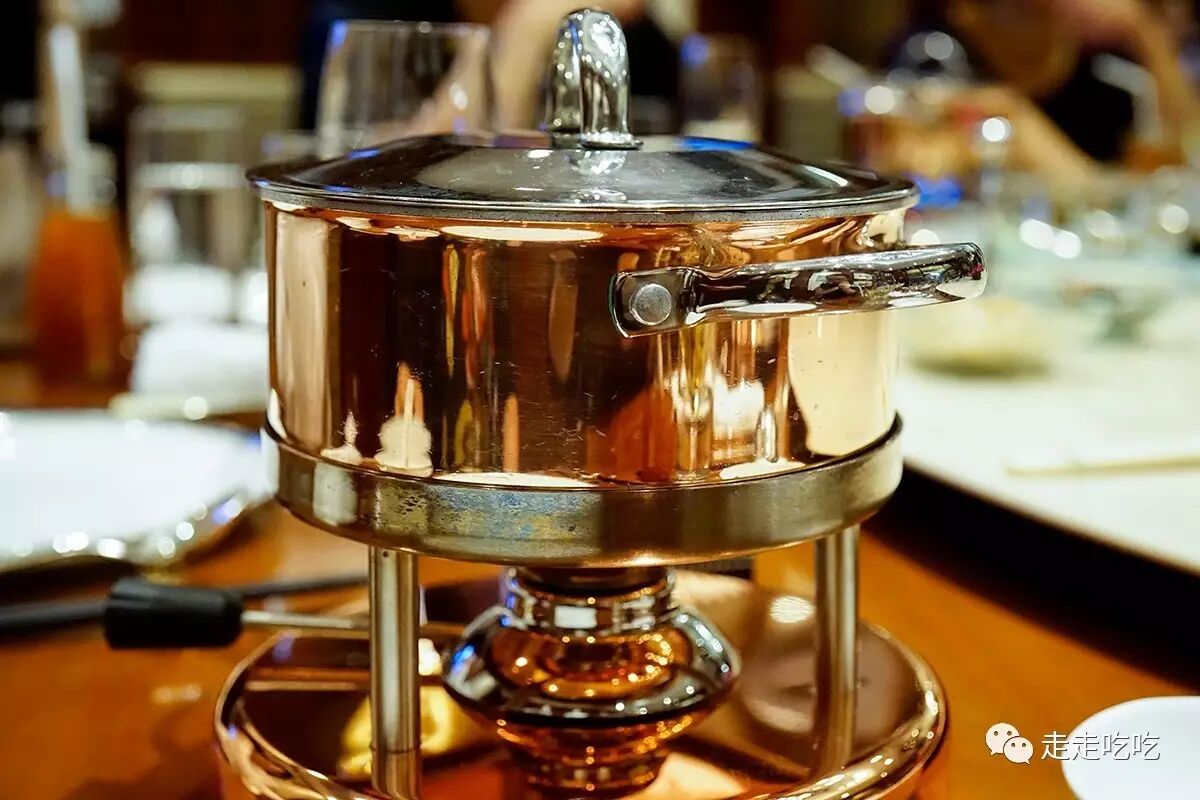 京华阁有九间包厢,“天坛”、“地坛”及“日坛”为较大的三间,其余还有“月坛”、“东海”、“南海”、“西海”、“北海”、“中海“,取名据说都有风水考量。我们订的是天坛,餐桌是北京风格的宽敞大气,坐十三个人完全不成问题。朋友到齐,香槟在冰桶中放好,大家入座商量点菜事宜。由于粤菜菜单有整条海鱼等食材,因此需要达到一定人数方可提供,而火锅是一人一个的小锅,因此一人起点。幸好有六位朋友吃粤菜,于是我们一桌人同床异梦,吃火锅的吃火锅,吃粤菜的吃粤菜。