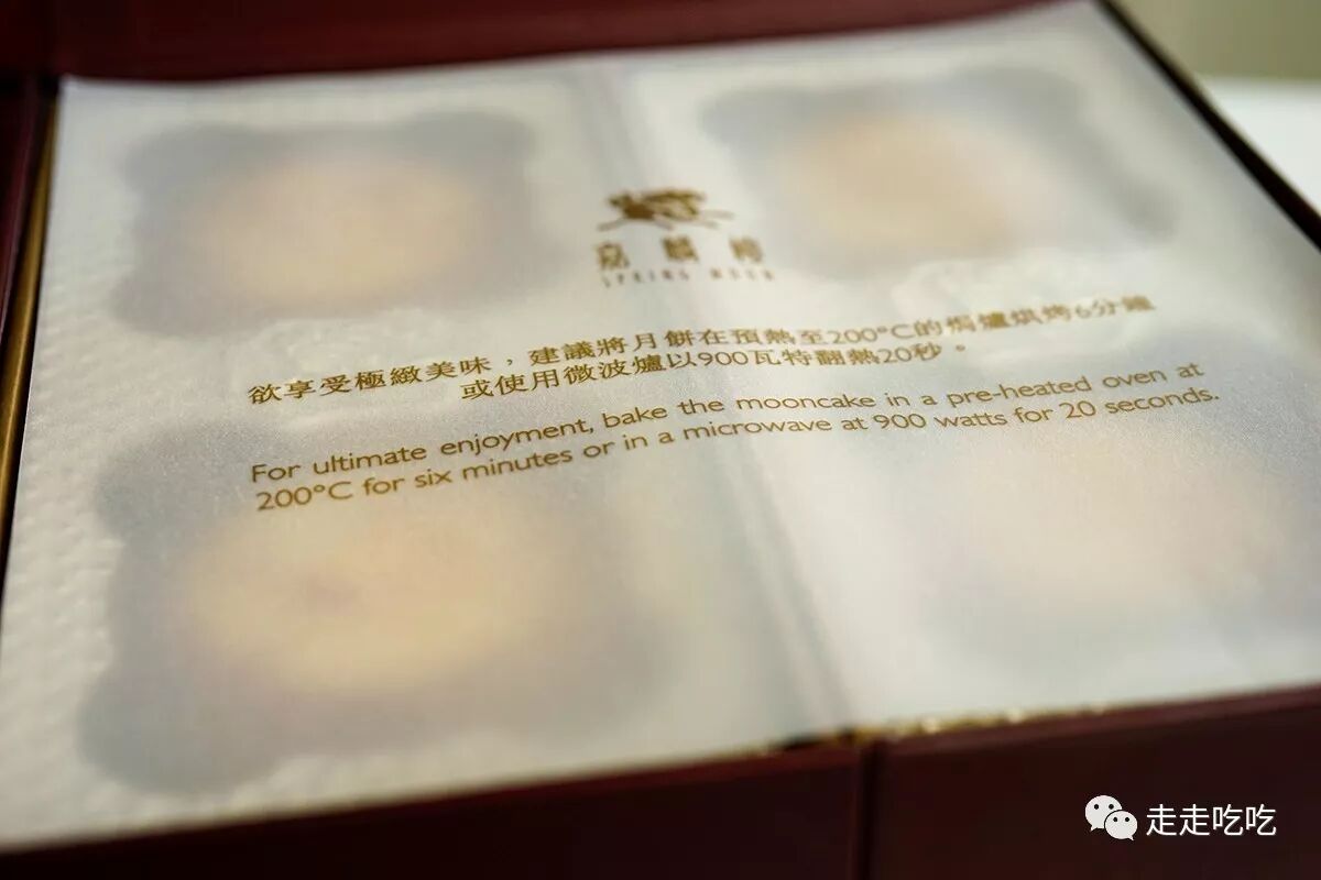 我虽然每年都吃嘉麟楼的迷你奶黄,但个人并不特别喜欢。尤其未加热的时候,奶香虽足,皮也酥,但整体太过干身。不过冰镇或加热之后,有不同的感觉,可以尝试。尤其加热后放变得柔软适口,亦使得香气完全释放。今年嘉麟楼不仅改了月饼包装,更在衬纸上注明了建议食用办法,是个不错的做法。不然未加热就吃,就会给人盛名之下其实难副的感叹。