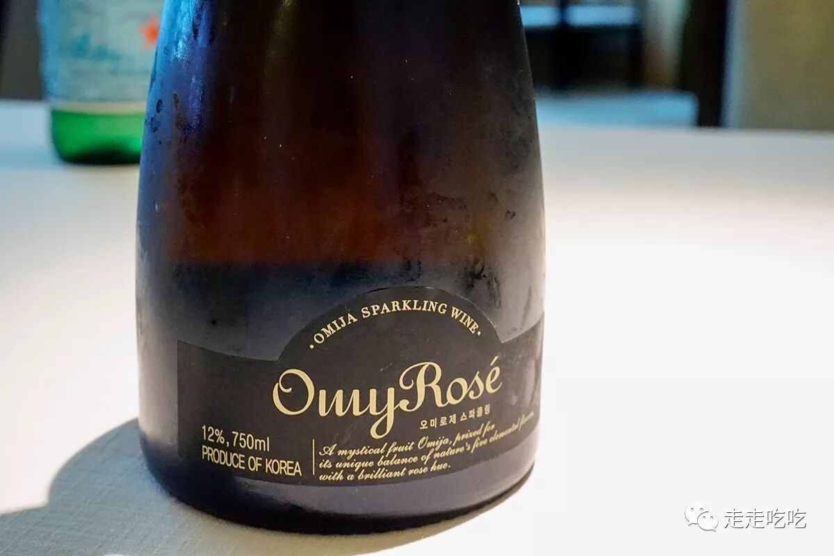 菜品之外,韩国配酒系列还算有趣,第一款五味子(오미자)气泡酒和第三款覆盆子酒都令人留下不错的印象;说十分好喝却没有。以本地酒配本地食材,总归是合情合理的。但末尾甜品酒配的是五味子白兰地,酒精含量达52%,喝得人虎躯一震……