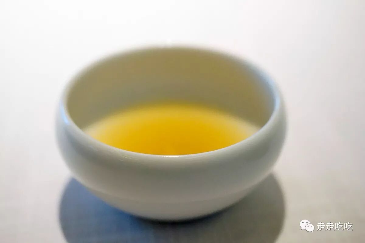 在标榜正统宫廷料理的餐厅里喝圣培露气泡水,本身就非常穿越;如果再点个洋酒的搭配,那真是世界大融合了。不过好在一杯玉竹(둥굴레)茶把人拉回了朝鲜宫廷料理的世界中。玉竹又称葳蕤,根茎可入药,可调节血糖水平。在韩国,玉竹根常作为泡茶之用,也常入馔,被视为一种健康的食材。