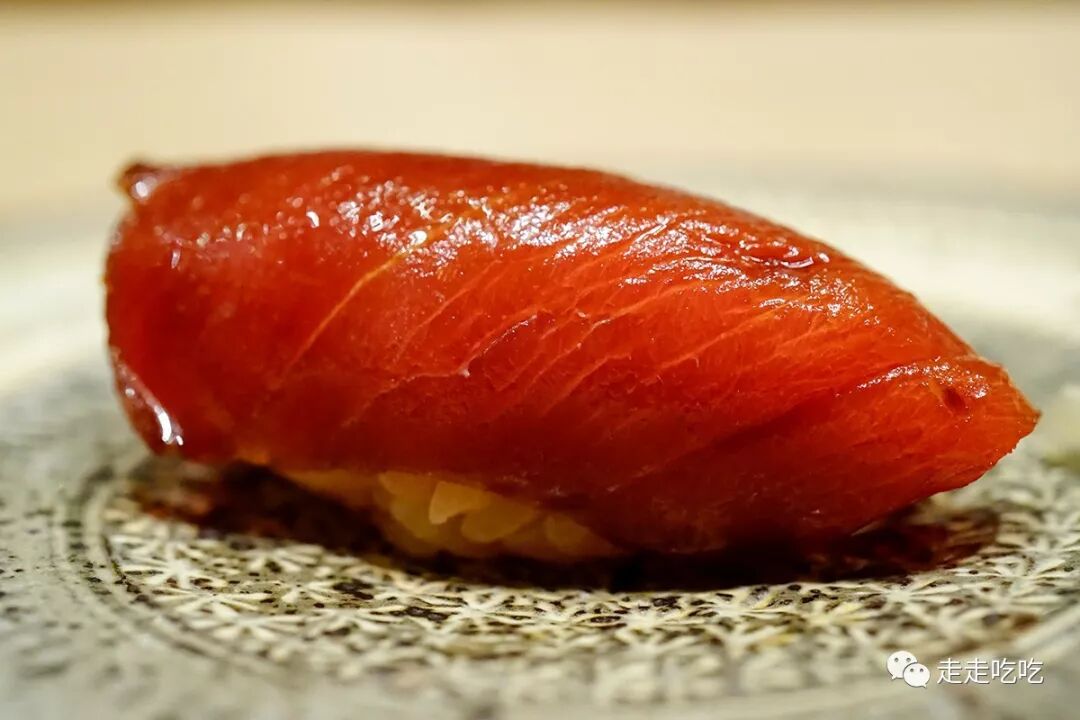 鮨あらい的寿司饱满美观,赤醋温润平衡;其最让人津津乐道的是对鲔鱼的专注,鲔鱼的部位在这里得到进一步细分,在お任せ(omakase)中鲔鱼比例较高。除了套餐中的鲔鱼握寿司外,还有豪放的鲔鱼卷。新井师傅虽然在寿司匠工作多年,但他的寿司中看不出太多匠系的影响,唯有奈良渍鮟鱇鱼肝还依稀有些回响。