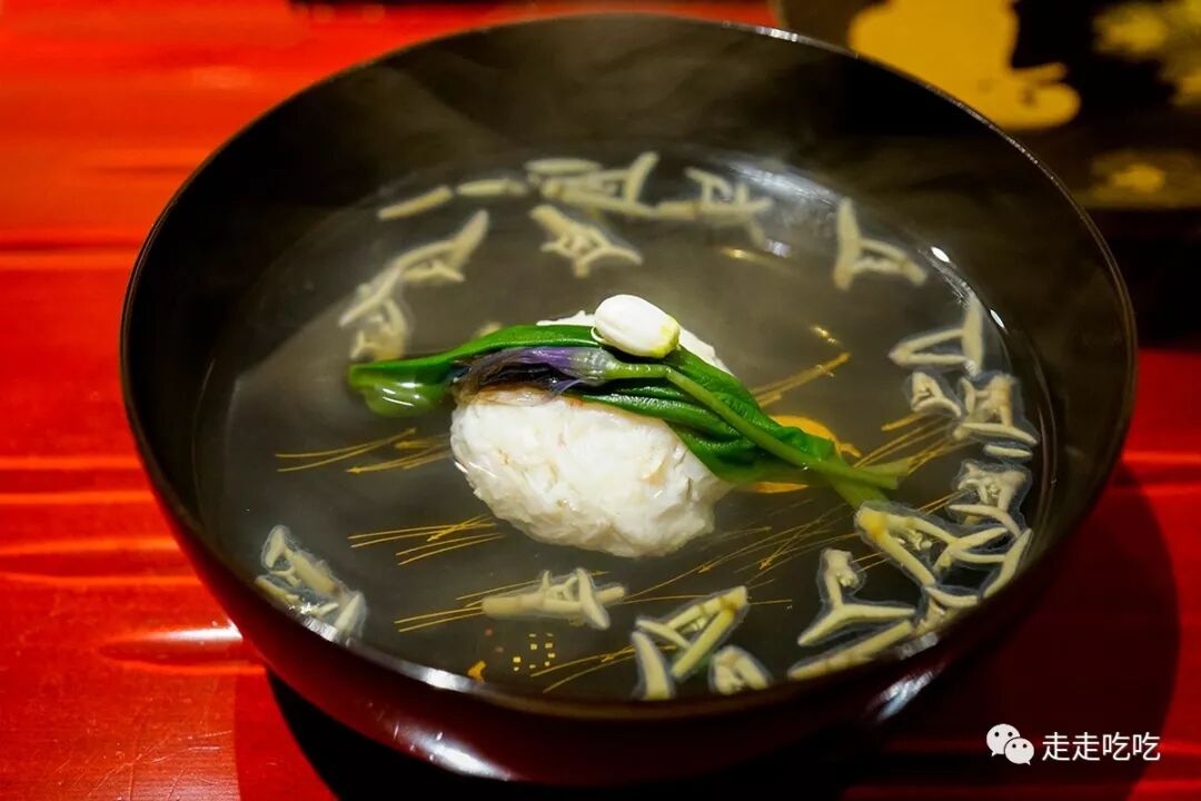 椀物:日本毛蟹丸(毛蟹真丈)高汤,猪牙花(片栗花)、香橙花(柚子花)及莼菜(蓴菜)