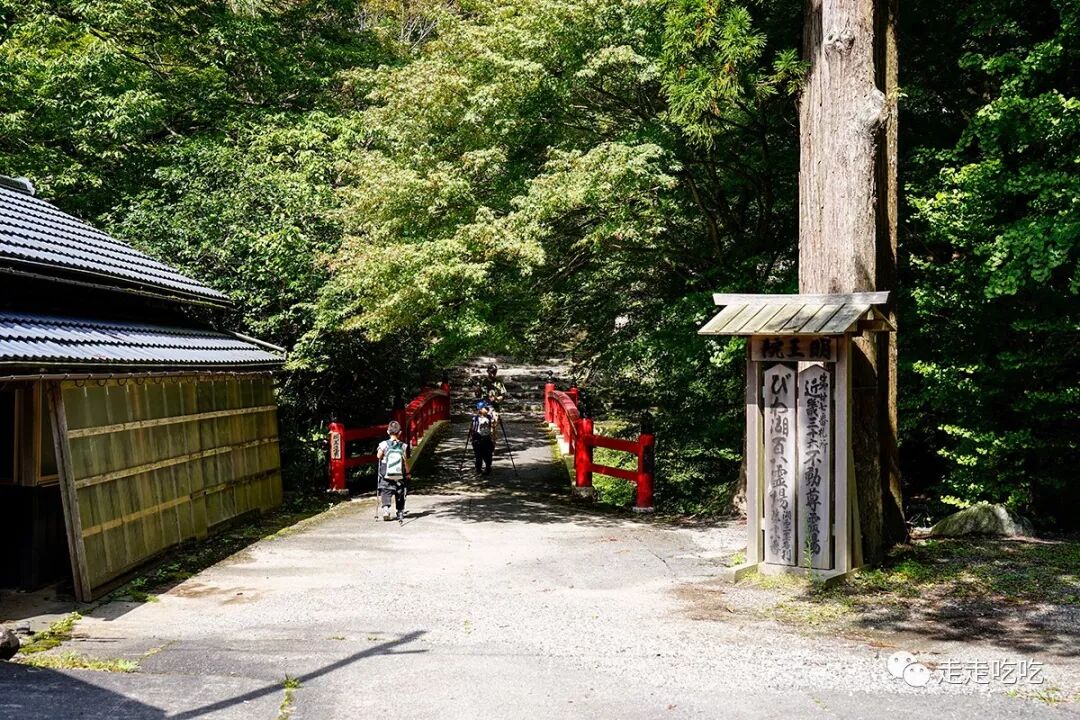 谈笑间下了高速、出了国道,便看到了路边比良山庄的指示牌,近两个小时的车程并不烦闷,而且一路通衢,开车也无太大难度。我们到达比良山庄时,离预约时间还有半小时,停车场边是个地主神社,左手边则是登山口,我们打算去登山口附近走走。
