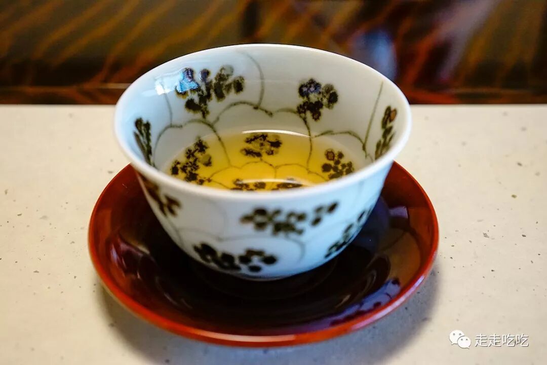 入座之后稍事休息,仲居奉上山庄自制的茶。初入口有淡淡香气,似苦荞,但又不一样。询问后方知是鱼腥草(ドクダミ)烘制而成的茶,由于鱼腥草加热后腥味便消退,因此完全喝不出一丝腥气,只有淡淡清香。