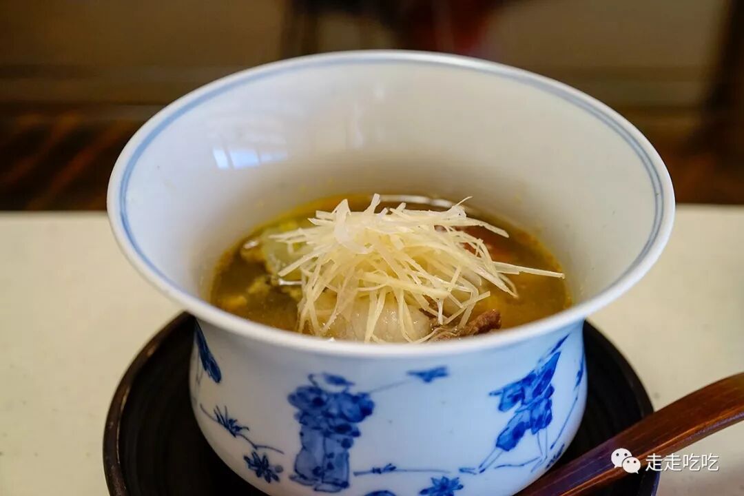 与御饭相配的味噌汤乃以鲤鱼皮入馔,配以少许酢橘皮调味,营造出一种清新的味道。鲤鱼皮与刺身中的鲤鱼肉呼应,菜单各个部分紧紧围绕当季物产,在细节上形成完整的烹饪逻辑。