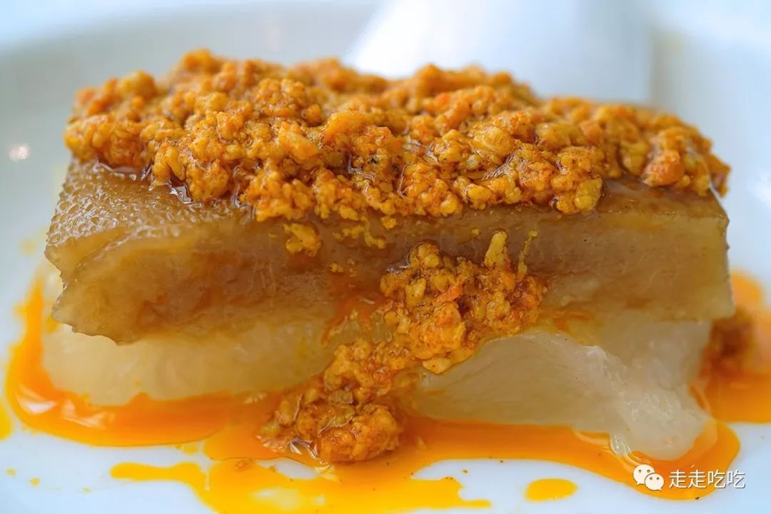 炸咸蛋粽每次一口,意犹未尽。大班楼的剁椒调味平衡,咸辣鲜香,各有倚重,用来配龙趸头和胖头鱼(粤语称之为“大鱼”)鱼三角都十分美妙。