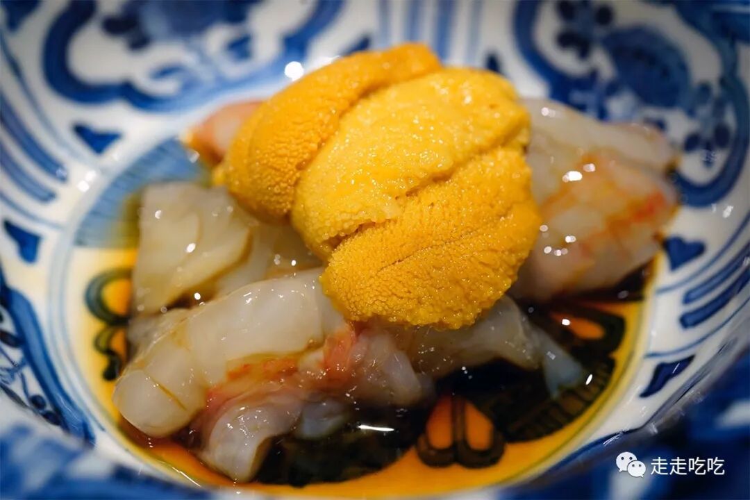 在天本用餐氛围轻松,他的酒肴用日本料理的手法对传统寿司店过于简单的前菜进行了提升。无论是绍兴酒醉牡丹虾与紫海胆,还是海参肠蒸蛋,亦或熏烤的鲣鱼,都手法精准,令人食欲大开。他善于选购食材,对日本各海域不同时节的出产如数家珍,因此他多能挑得出彩的海鲜,配以到位的预处理,令每一贯寿司都平衡细腻,回味许久。不过随着食材成本的上升,后面天本可能进一步提价。