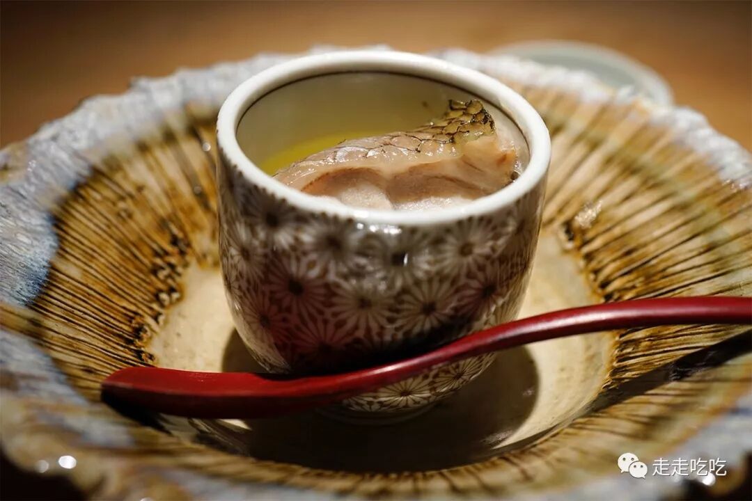 不同于东京大部分割烹店,松川的空间宽敞,吧台之外还有数个包厢。吧台边静谧的空间不似其他名店,毕竟割烹店多数是比较热闹的。松川吧台的客人都沉默无言,静静吃着菜品,我们坐在包厢里亦不敢高声交谈,这个氛围让我以为回到了招福楼。