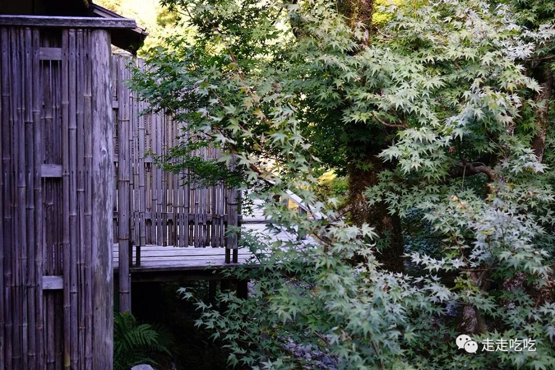 车子开进深山后,突然手机没了信号。盘山公路一边是斑驳的山壁,另一边则是高大挺拔的日本柳杉林,密密麻麻,遮天盖日。车道很窄,部分路段还有施工队在修缮,因此遇到大巴士从山里驶出,我们的车还得倒退回就近的弯道处停靠,以便让巴士先走。司机说,你们也够折腾的,京都市区这么多旅馆不住,挑了个这样一个地方。我笑而不语。