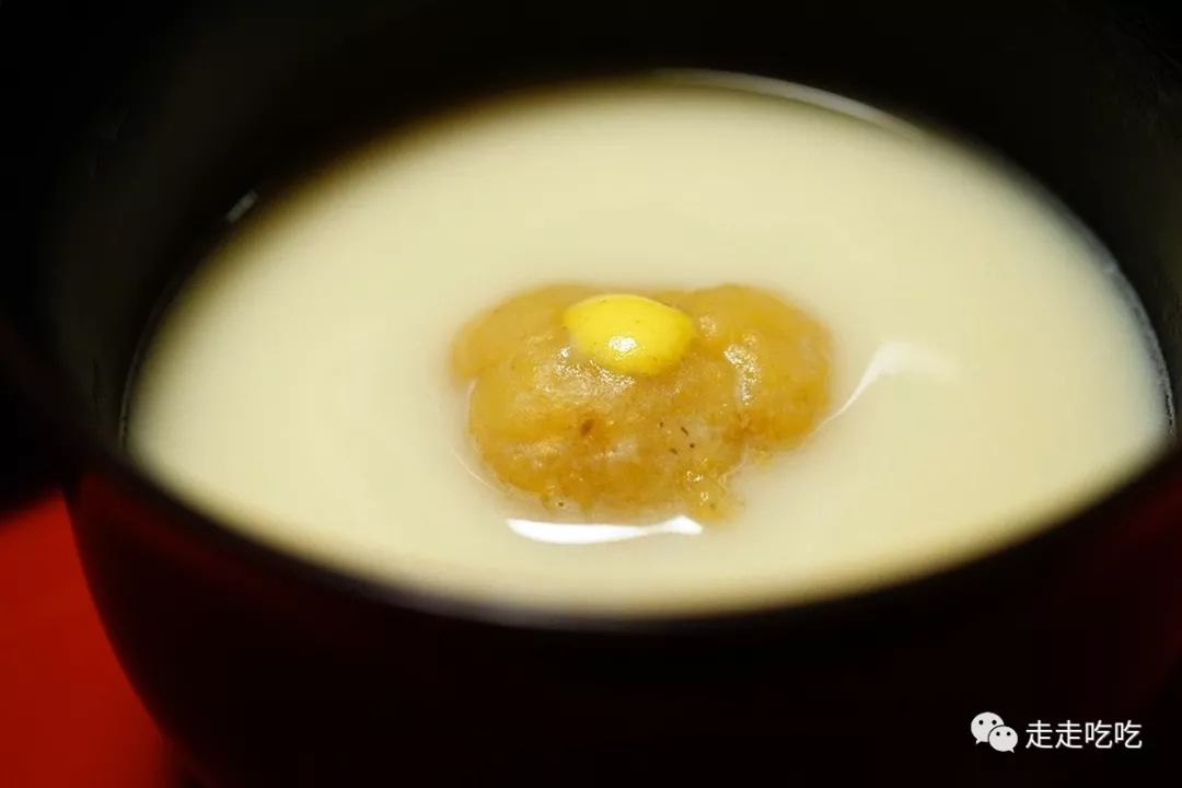 八寸前有一道简单的山药豆(零余子)过渡,以葛粉勾芡,透着淡淡甜味。