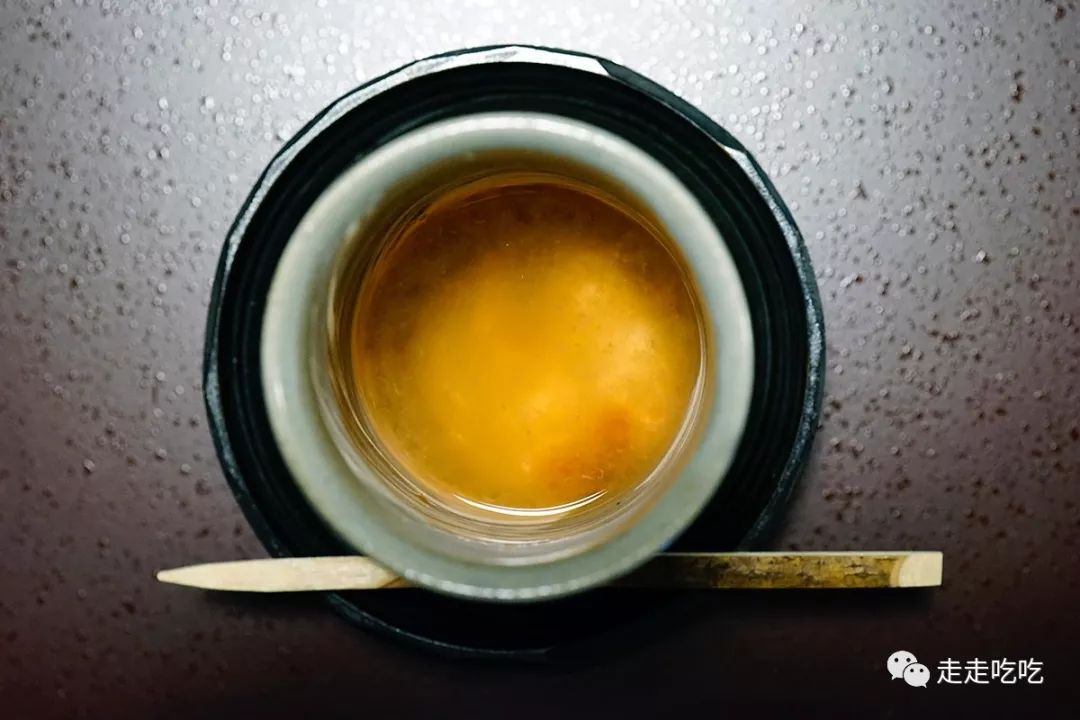 随后上桌的是椀物,当日用本地河川中的鲤鱼和丹波松茸做了土瓶蒸(土瓶蒸し),松茸作为秋季的代表性食材之一自然会多次登场。打开瓶盖香气随着热气蒸腾而出,令人心旷神怡。鲤鱼先经过炸制后与松茸入出汁蒸制,鱼肉绵软,但仍有淡淡的土腥味。