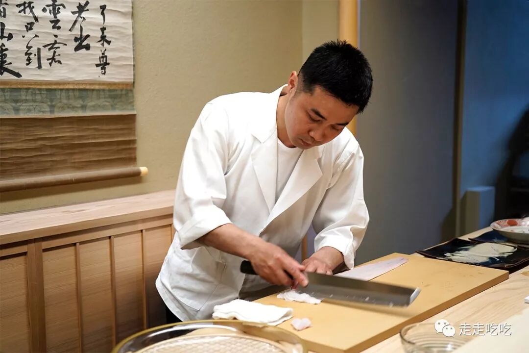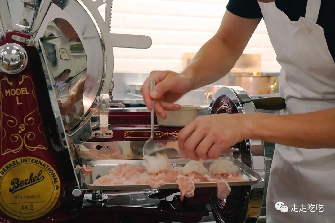 高桥隼人(高橋隼人)师傅的餐厅原本位于西麻布,后来迁移到了他家一楼,厨房亦是餐室,并排三张两人小桌,全满亦只可接待六人。一周七天他要休息三天,更使得预约难上加难。去年他购置了昂贵的新火腿切片机,一时间社交媒体上都是这亮闪新机器的照片。