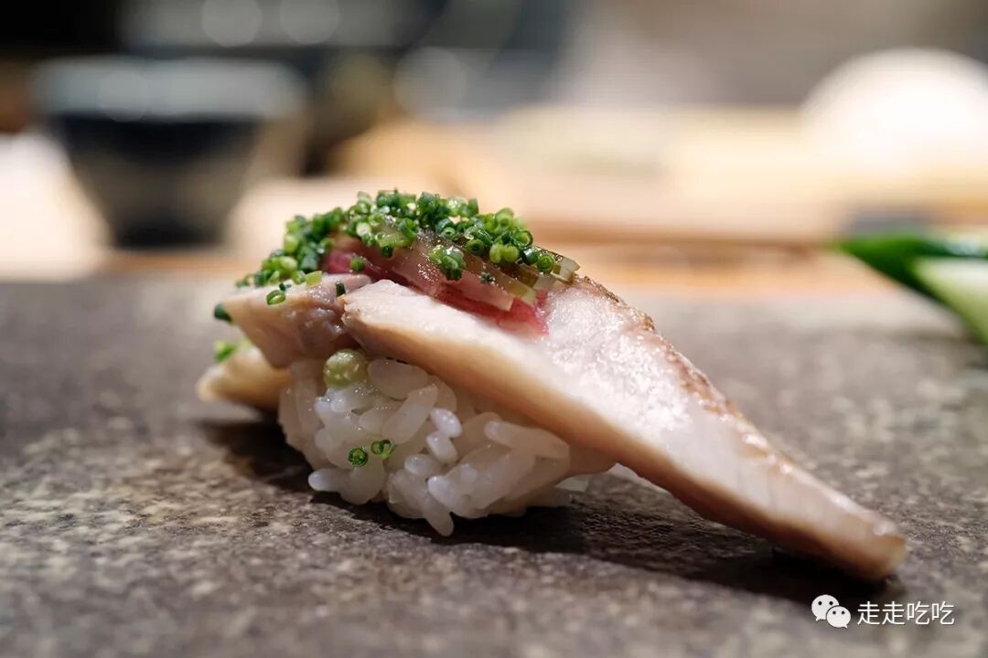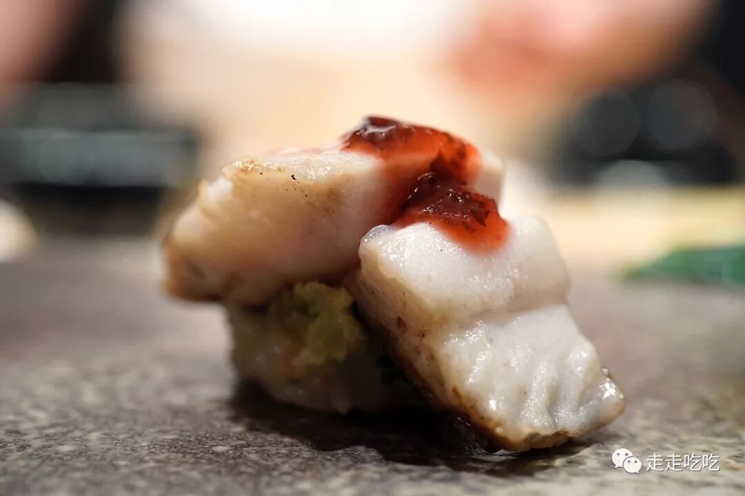 去年的拜访令我越发觉得天寿し的所谓九州前风格其实是将组合烹饪的寿司变成了混合烹饪,各个组成部分叠加在一起好比中餐烹饪,各类食材、香料组合方成一菜,各位的口腔则是这烹饪的最后器皿。这突破了江户前寿司简单组合的特点,在天寿し食材和各类配菜及调料都是有机互动的,看似有些组合非常繁冗,但一吃便知道为何要如此混合搭配,并不可随意增减。这种与江户前全然不同的感觉亦是九州前风格吸引各路食客拜访的核心原因,如今天寿し京町店已成为福冈最难预约的寿司店之一,希望以后还有食运可以经常吃到。