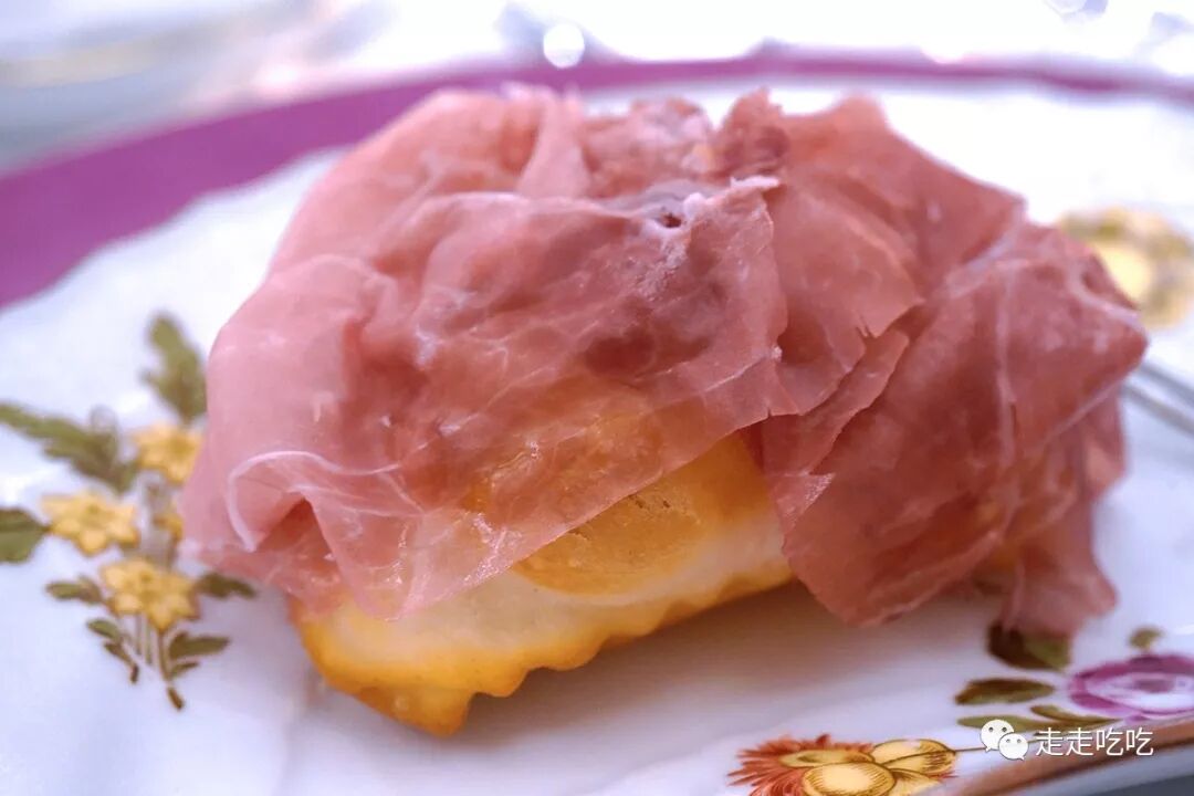 高桥师傅曾在帕尔马Trattoria Le Viole修业,因此他的料理以帕尔马地区风味为主。各色火腿自然在整个菜单中占据重要地位,除了意大利火腿外,店里还用了好几款岐阜县著名火腿制造商多田昌丰(多田昌豊)制作的Bon Dabon,这是日本唯一认证的帕尔马火腿制造商,东京只有Pellegrino和Sugalabo两家餐厅可使用他制造的火腿。除了火腿品种的多样化外,火腿搭配方式亦让人大开眼界,各类食材都与火腿产生了亲密接触,蜜瓜自不用说,白米饭、鲍鱼、玉米、茄子及软面包配蛋液与火腿的搭配竟都出奇得美味。