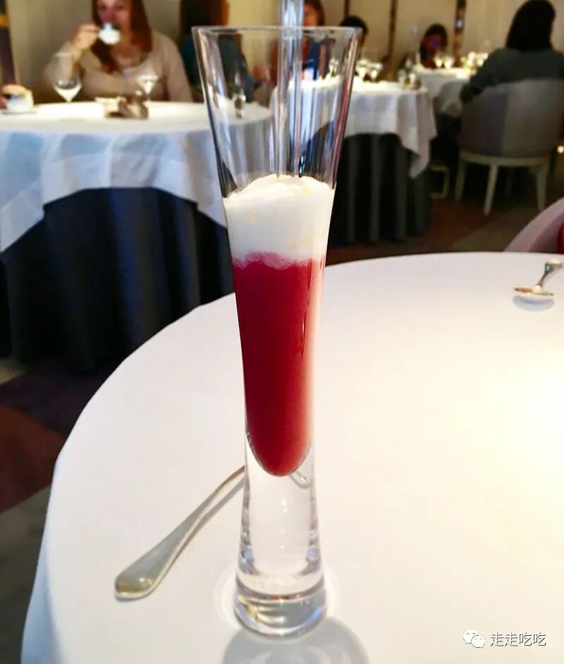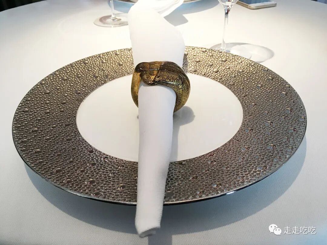 服务而言,自入门至落座,颇为程式化,与一般高级餐厅无异,并无个性之处。第一次来,便选了招牌菜单(Menu Prestige),写此文时查看了下官网,发现此菜单至今除了价格略涨以外,结构和大部分菜式都与我们当日吃的无甚差别,看来确乎是很经典了。下午还有游览安排,因此不想饮酒,问是否有非酒精搭配,答案是没有。连配酒配饮都如此中规中矩,让人吃了一惊。