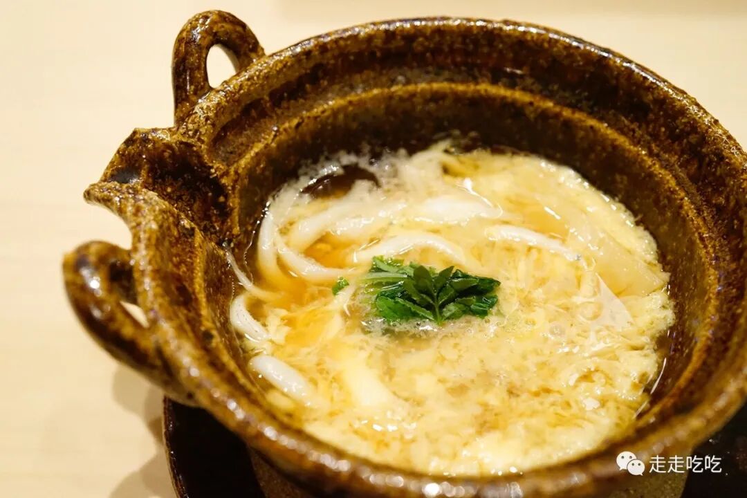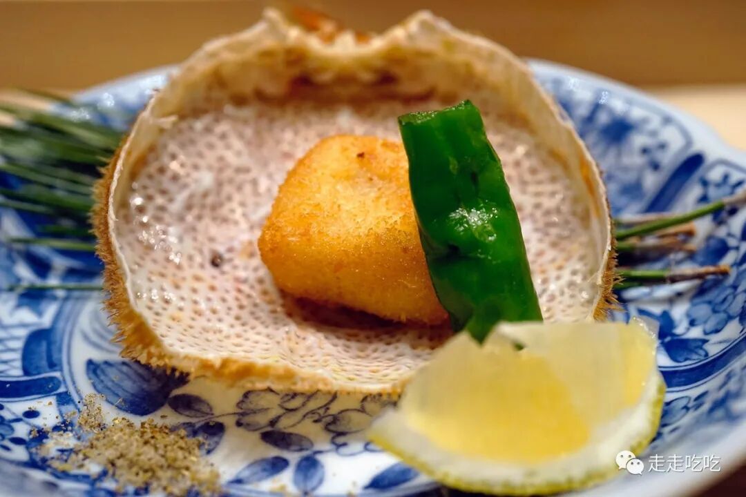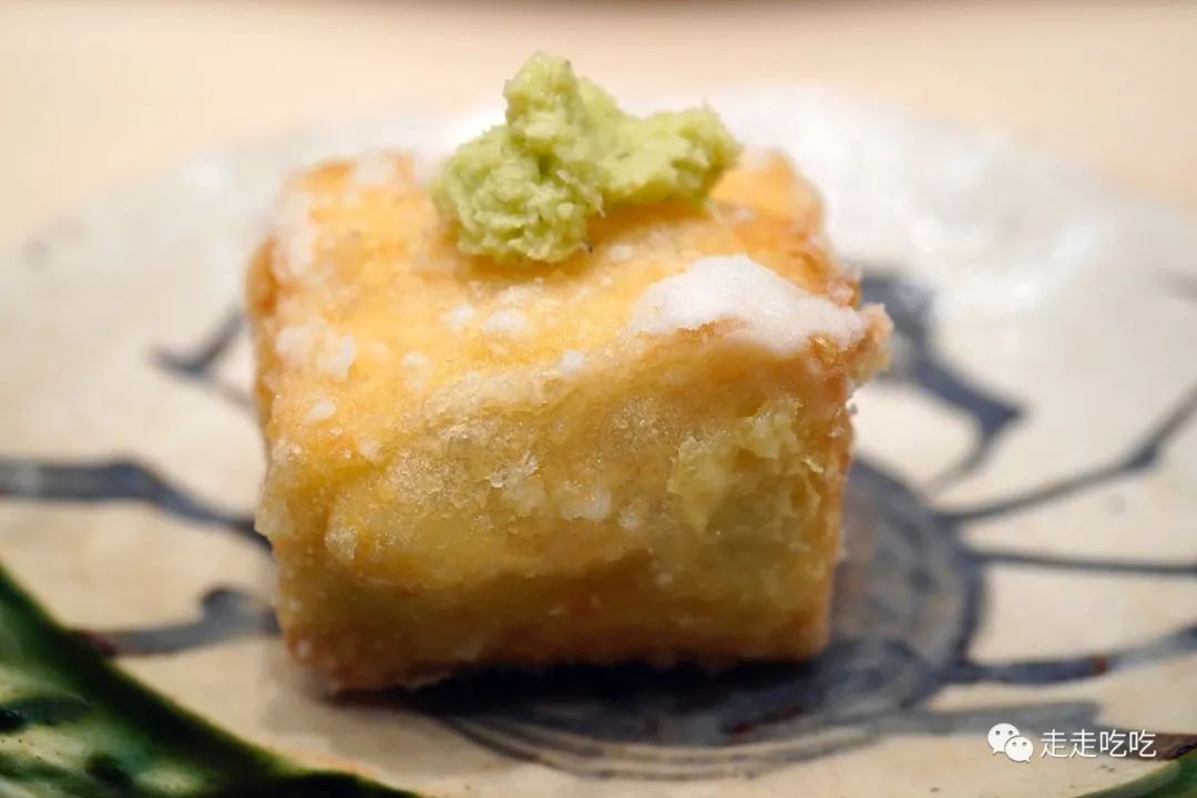看来手法成熟是因为海纳百川、融会贯通啊!他坦言虽然玉子烧的方子是按照本店来的,但自己做了些细微的改良,令金坂系本已空气感十足的慕斯玉子烧变得更为柔糯细腻。最后一次拜访时一道油炸胡麻豆腐,外皮炸酥,里面则绵软化浆。除了胡麻豆腐自身的香气外,还加入了萝卜粒增加味道和口感的层次,吃到后来突然想到这不是日本版的戈渣吗?
