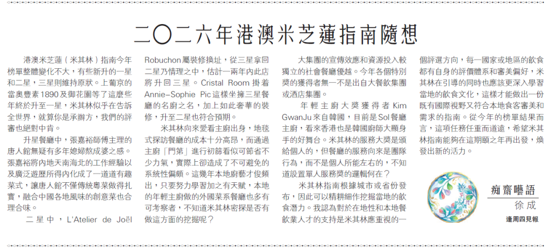 疫情前港澳米芝莲(米其林)指南一般都是前一年年底发布,如今米其林发布会成了忙碌3月中众多“盛事”之一,最新指南已于3月19日发布于澳门上葡京。