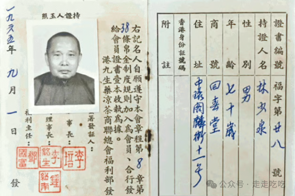 林少泉的港九生药凉茶商联总会会员证