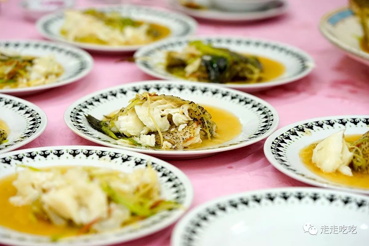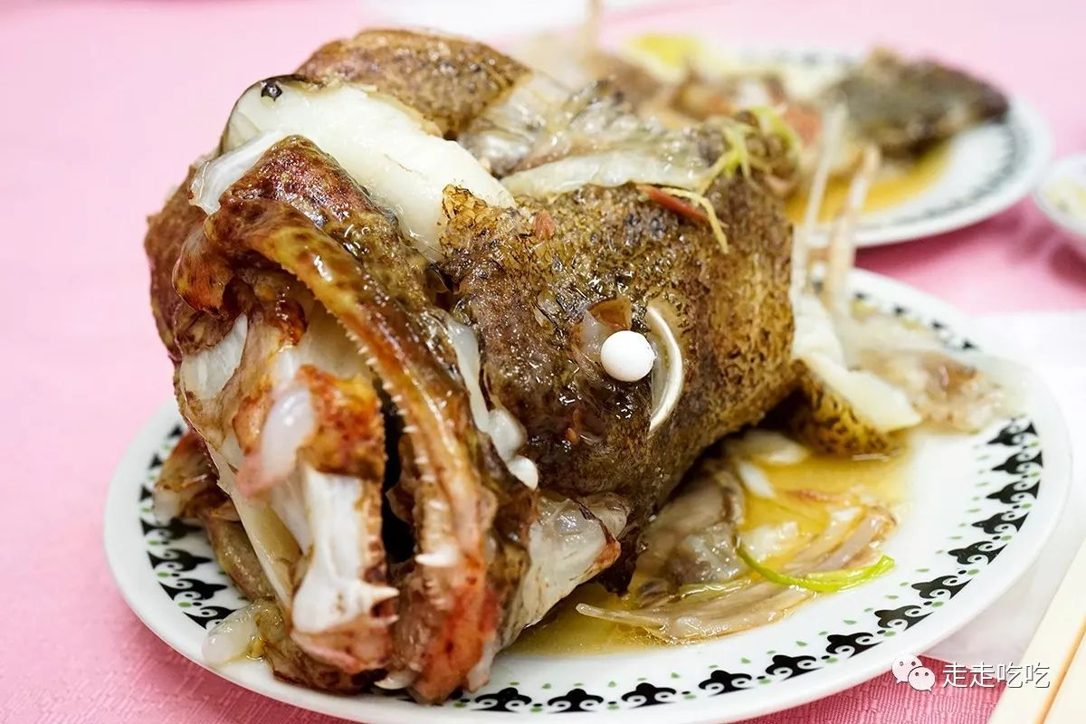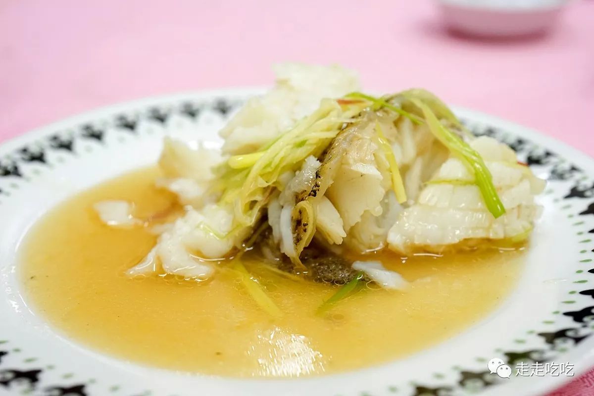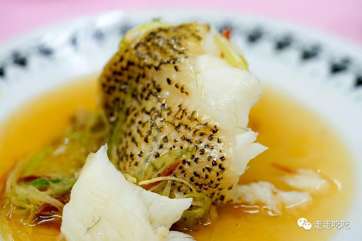 蛇羹之后上桌的便是粤菜中的经典菜式蒸鱼了。崩牙成用的是5斤左右的黄皮老虎,一上桌气势万千。黄皮老虎即为褐点石斑鱼,俗称老虎斑,一般野生种皮色呈褐黄色,故名黄皮老虎。