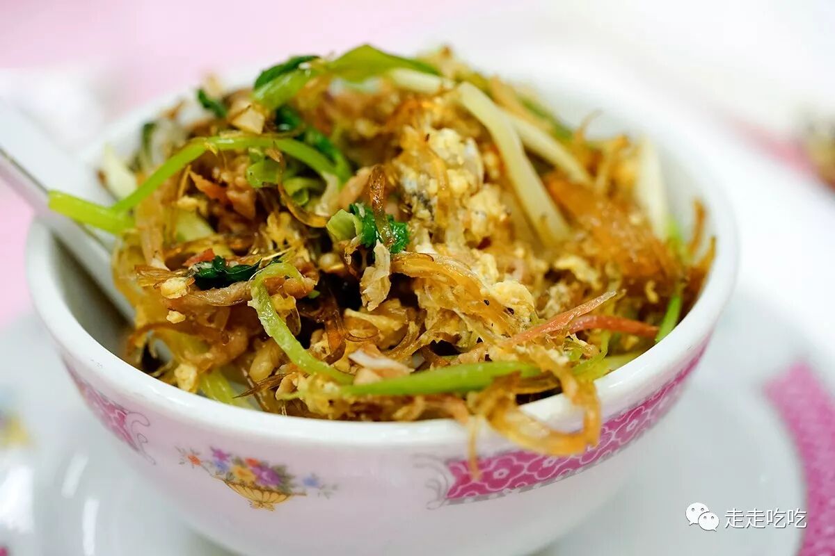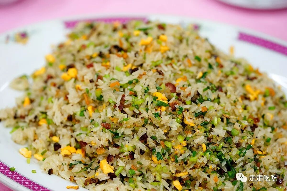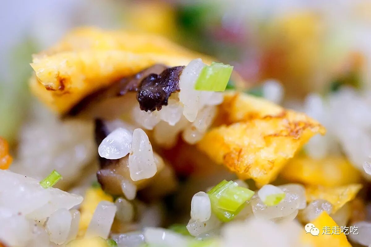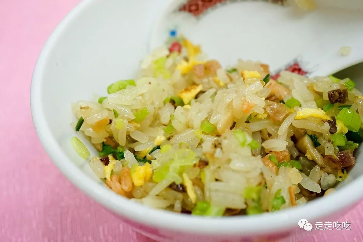 崩牙成的生炒糯米饭配料有鸡蛋、葱花、腊味、冬菇、芫荽等等,炒成之后香气扑鼻、颗粒分明,糯米虽绵糯而有嚼劲,腊味鲜美,令人轻轻松松就吃下满满一碗。当晚一位声称拒绝碳水化合物的胖朋友,默默吃了四碗……