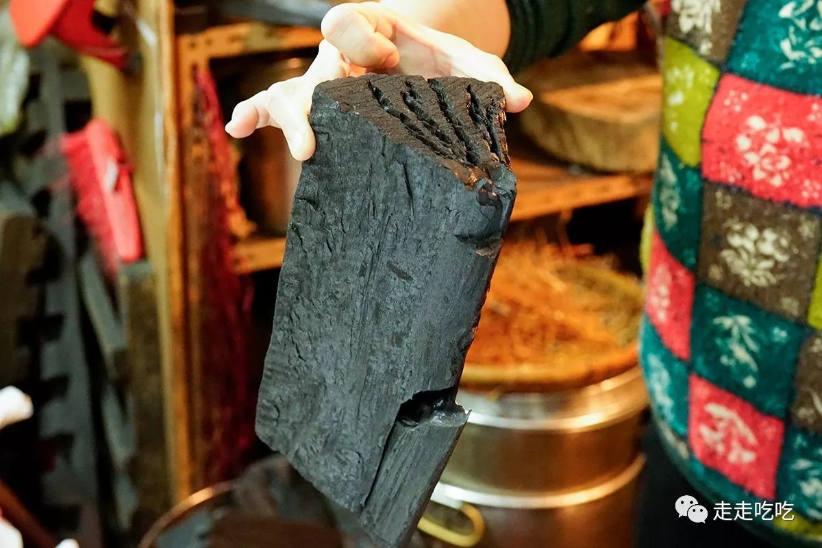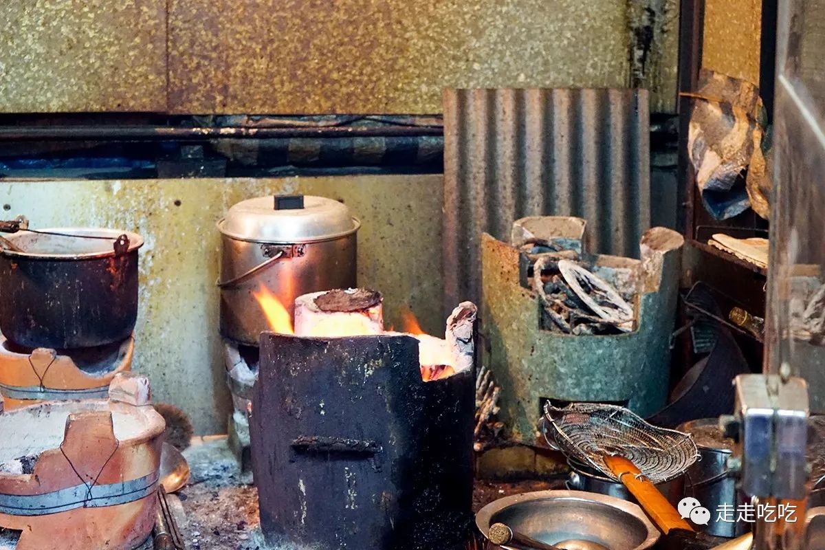 头两道菜都是典型的炒菜,吃的是食材在猛火快炒后混合产生的鲜香,以及刚出炉时那阵火热的镬气,这其中起到关键作用的便是崩牙成的四口大炭炉。根哥子承父业,完全沿用了父亲的老方法。炭用的是东南亚粗壮的原木炭,乌黑发亮,烧起来火力十足;炉子是原始的老炭炉,别处已难寻见,炭火的力道熏得厨房墙壁都发黑了;炒菜用的是大铁锅,这么大分量的菜一气呵成,却依旧有如此高的精确度,实在令人叹为观止。
