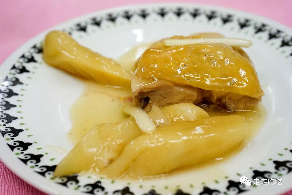按照陈荣的说法,这鸡肉是要落油,再与子姜同炒,后上炉蒸制一个多小时,才适当炆煮。但如果经过这么些程序,鸡肉又是如何做到滑嫩至此的?实在有趣。